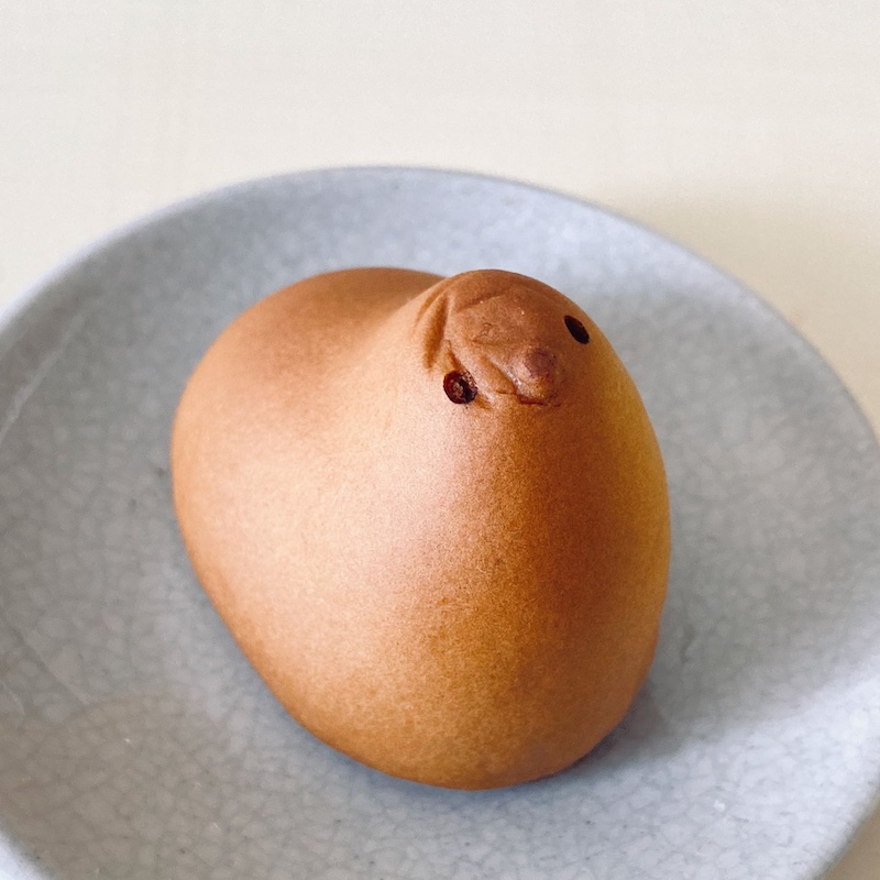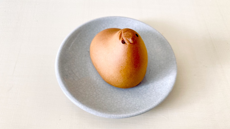 個包装から取り出したひよ子はすごくしっとりしてて、皮が柔らかくて、てっぺんがおされてたんだろうねぇ。シワがよってた。